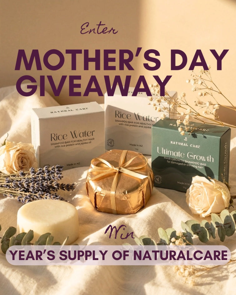 🌸 MOTHER’S DAY GIVEAWAY 🌸 Win a YEAR’S SUPPLY of natural haircare (2 Ultimate Growth + 2 Rice Water Shampoo Bars + 3 Conditioner Bars). We’re choosing 4 winners.